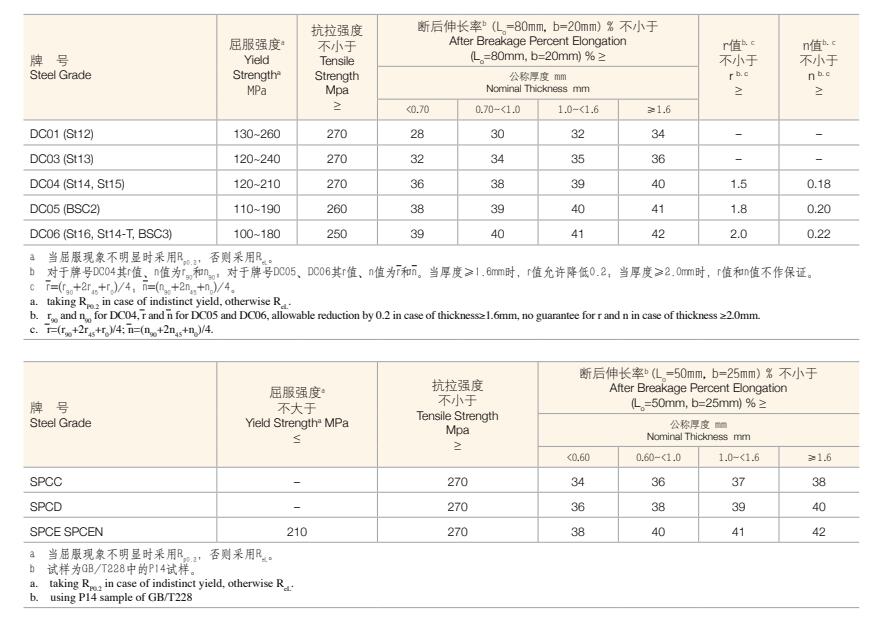 低碳和超低碳鋼鋼板及鋼帶之力學(xué)及工藝性能